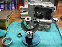 メインドライブレース・カウンターシャフトブッシュともケースへ圧入後、冷ましてからカウンターブッシュの内径を仕上げて、メインドライブレースのラッピング。